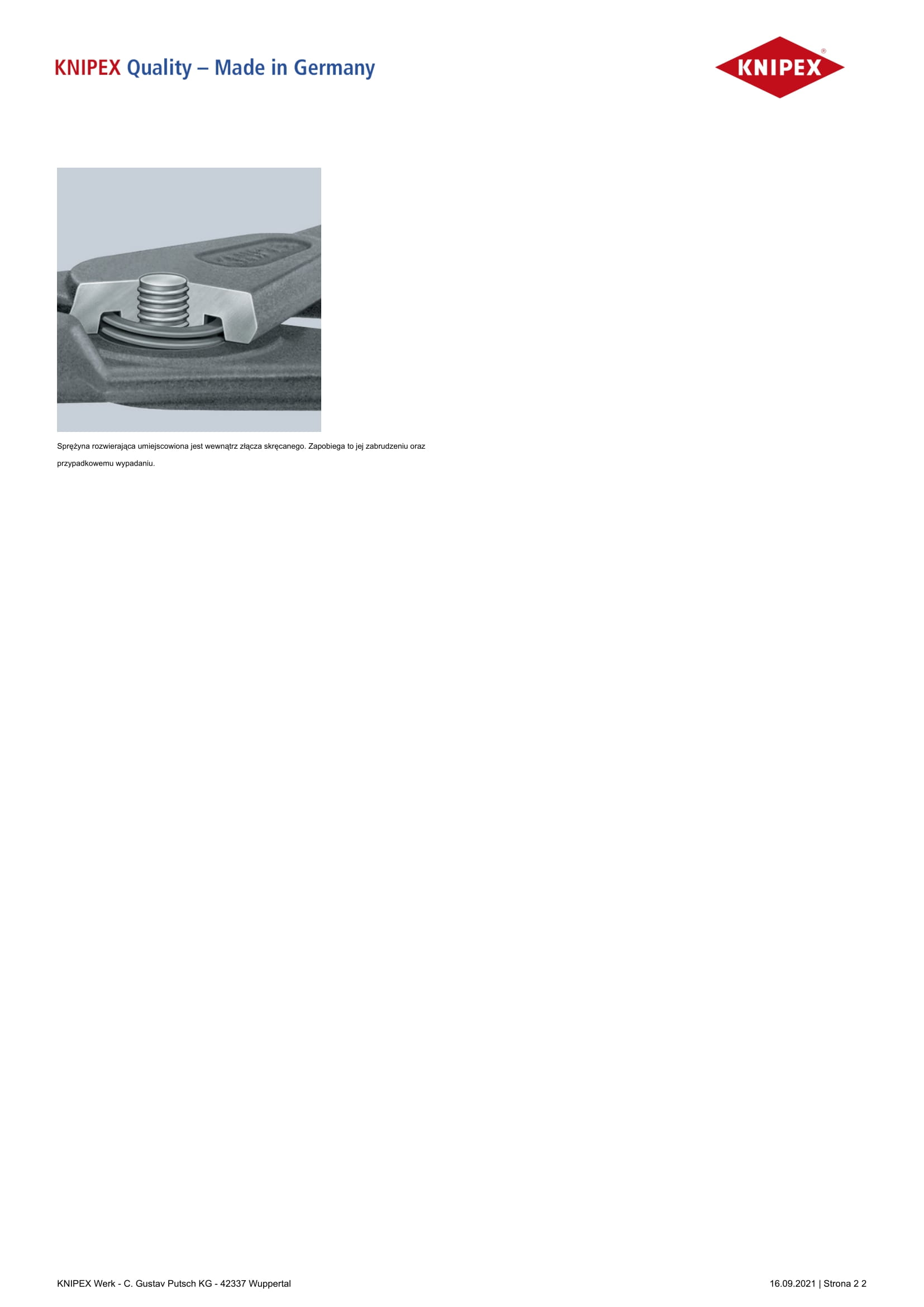 Sprężyna rozwierająca umiejscowiona wewnątrz złącza, dzięki czemu jest zabezpieczona przed zabrudzeniem oraz przypadkowym wypadaniem