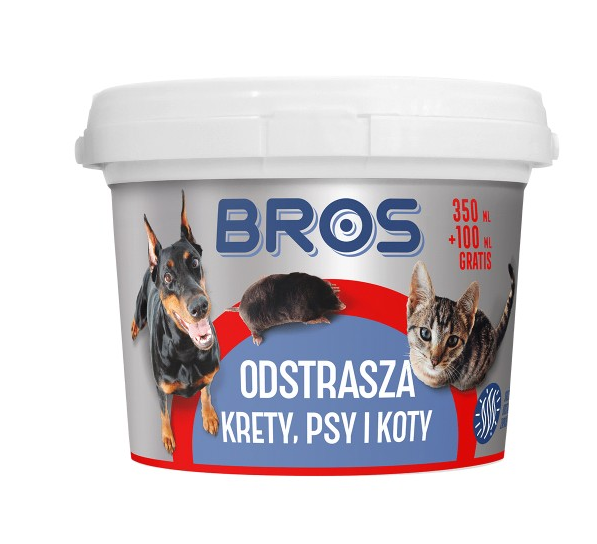 Preparat odstraszający Bros 027 występuje w postaci proszku i poprzez jego nieprzyjemny zapach skutecznie odstrasza krety, psy czy kotów. Zapach preparatu Bros 027 nie jest nieprzyjemny dla ludzi. Działanie proszku utrzymuje swoją skuteczność przez okres ok. 2 miesięcy. Zastosowanie w miejscach wzmożonej aktywności zwierząt.