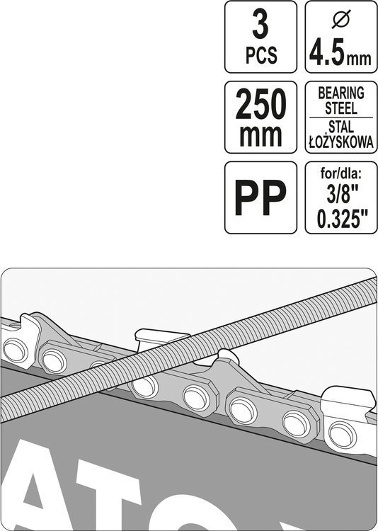 w zestawie pilnik okrągły, prowadnica i rękojeść z polipropylenu