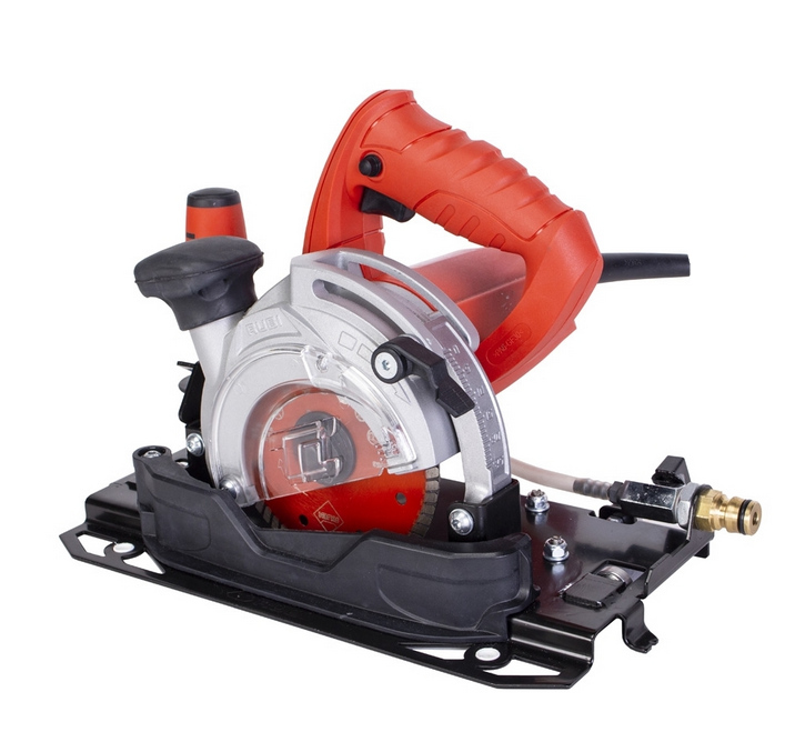Podstawa ze stali węglowej wyposażona jest w stalowe łożyska z bardzo prostym systemem regulacji. Rubi przecinarka tarczowa TC-125 ma podwójny system odprowadzania i redukcji pylenia podczas cięcia. Na sucho, dzięki możliwości podłączenia odkurzacza, lub na mokro. Wejście pod odkurzacz ma 32 mm, ale w zestawie dołączony jest adapter do innych średnic. Pobór wody odbywa się przez szybkie złącze 16 mm. Podczas cięcia na morko wlot do odkurzacza zakrywa się gumową zaślepką, która służy za dodatkowy uchwyt.
