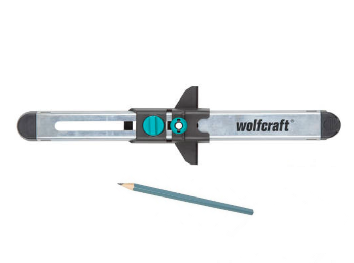 • Przymiar Wolfcraft WF6952000 wyposażony został w szeroką szynę dla bezpiecznego podparcia deski panelowej