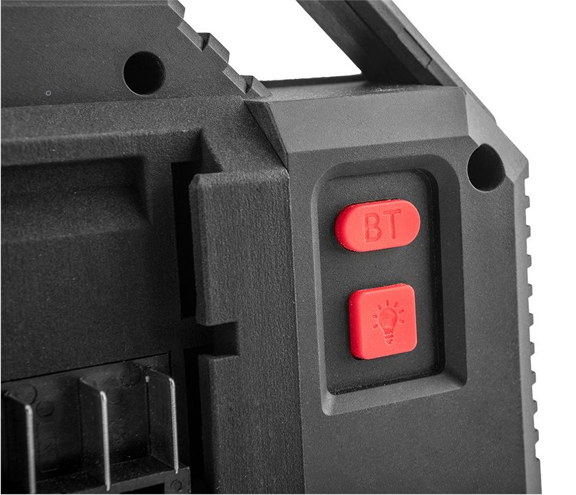 Solidna konstrukcja gwarantuje niezawodność i trwałość urządzenia nawet w trudnych warunkach pracy. Dodatkowo, funkcja lampy LED o mocy 15 W / 21 W zapewnia dodatkowe oświetlenie w miejscach, gdzie potrzebne jest dodatkowe światło. Dwa głośniki o mocy 3 W gwarantują wysoką jakość dźwięku, a składana antena ułatwia odbiór sygnału radiowego.