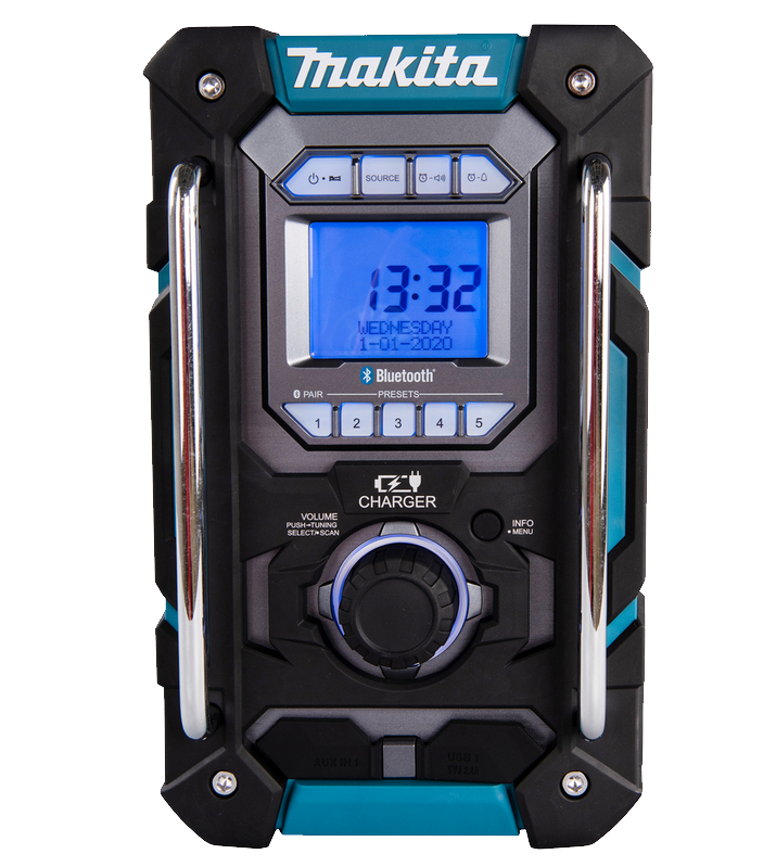 Dzięki wbudowanej ładowarce akumulatorów Li-ion CXT (10,8 V / 12 V max) oraz LXT (14,4 V / 18 V), radio umożliwia ładowanie akumulatorów w dowolnym miejscu, co znacząco zwiększa wygodę użytkowania. Czas ładowania akumulatora BL1860B (18 V / 6,0 Ah) wynosi zaledwie 100 minut, co przekłada się na szybką gotowość do pracy.