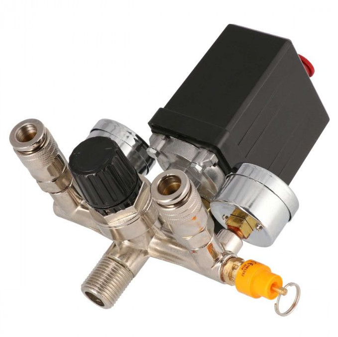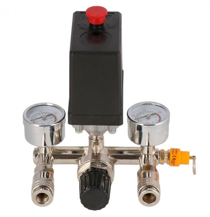 Zestaw reduktor ciśnienia z wyłącznikiem ciśnieniowym Airpress 36826-R to urządzenie do precyzyjnej regulacji ciśnienia w układzie kompresora. Reduktor pozwala na dopasowanie odpowiedniego ciśnienia sprężonego powietrza, a wyłącznik ciśnieniowy zabezpiecza cały układ sprężarki. Reduktor ciśnienia Airpress 36826-R został wyposażony także w dwa manometry, gdzie można monitorować ciśnienie robocze oraz dwa szybkozłącza do beznarzędziowego podłączania urządzeń.