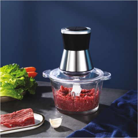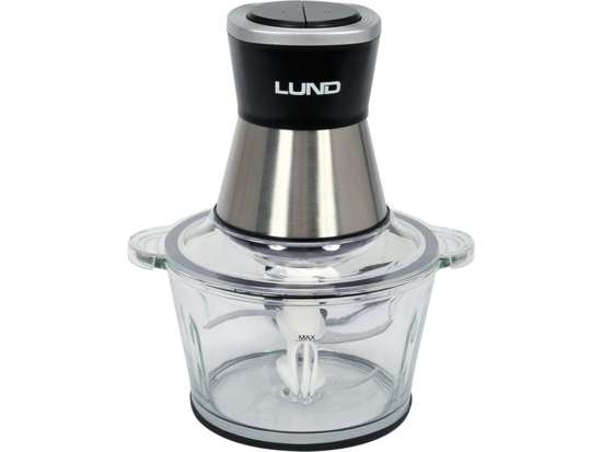 Wielofunkcyjny rozdrabniacz do żywności 3w1 marki LUND. SKuteczność siekania zapewnia mocny silnik 500W oraz ułożone 2-warstwowo cztery ostrza z wysokiej jakości stali nierdzewnej SS420. W zestawie również część do obierania czosnku oraz część do ubijania piany. Dodatkowym atutem urządzenia jest duża, 2-litrowa misa z antypoślizgową gumą oraz skrobak ułatwiający wygarnięcie posiekanych produktów.