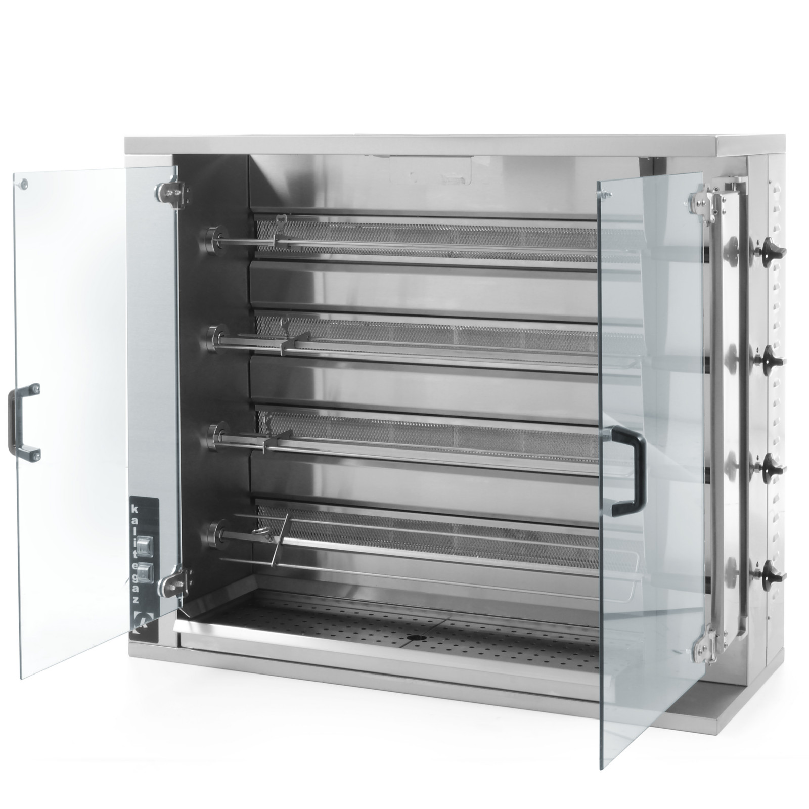 Rożen gazowy do kurczaków o pojemności 16/20 sztuk to profesjonalne urządzenie do branży gastronomicznej. Obudowa została wykonana ze stali nierdzewnej, zaś drzwi skrzydłowe z hartowanego szkła.