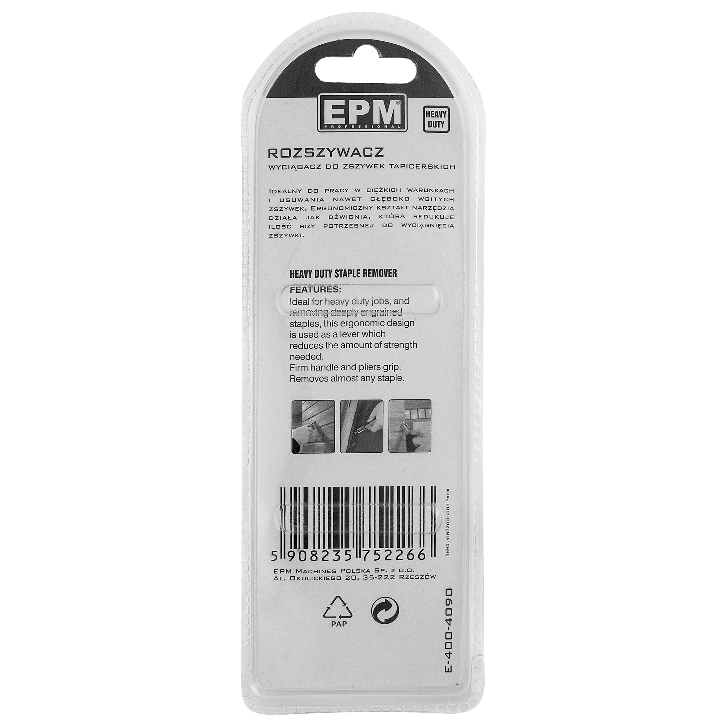 - idealny do pracy w ciężkich warunkach i usuwania nawet głęboko wbitych zszywek