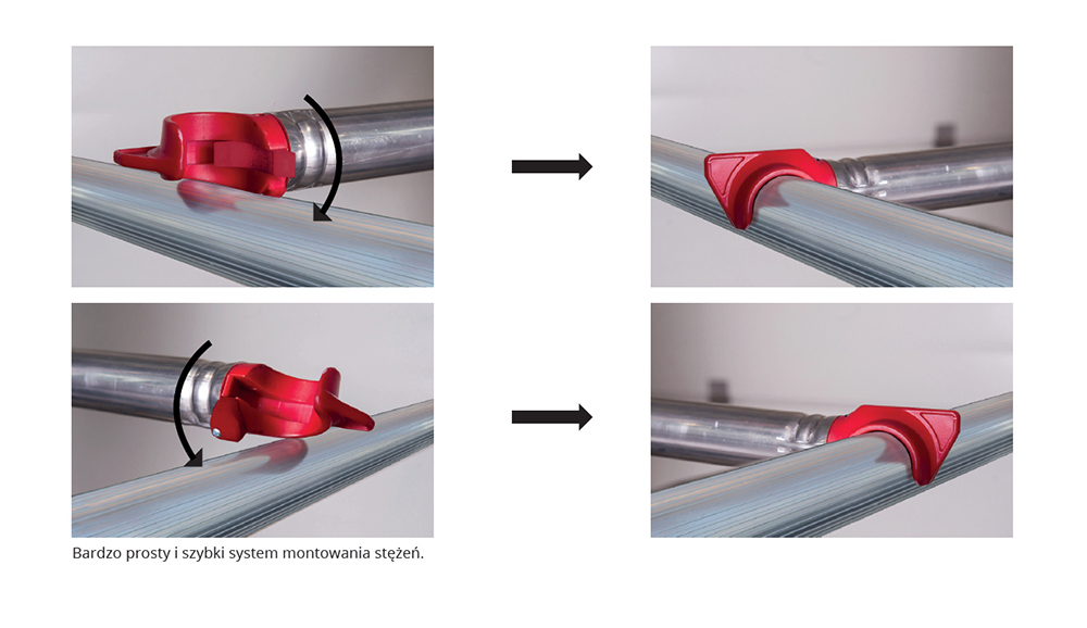 stężenia i barierki są łatwe do montażu i demontażu dzięki hakom zaciskowym