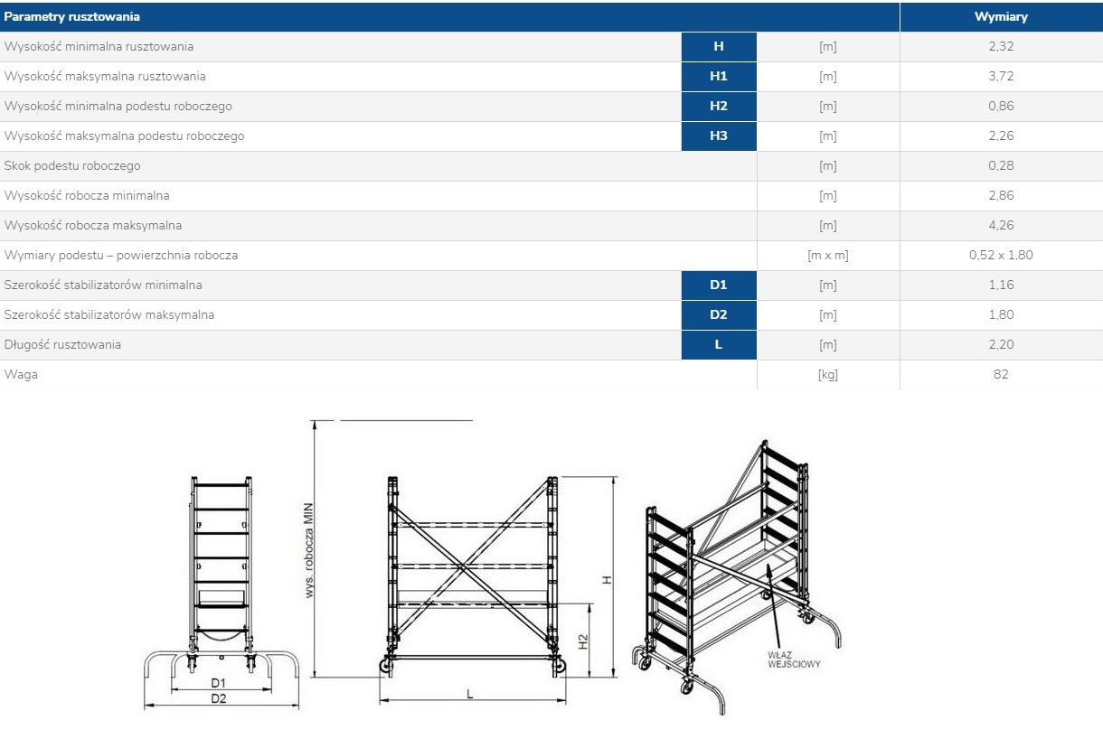 Mała masa rusztowania ze względu na aluminiową konstrukcję.