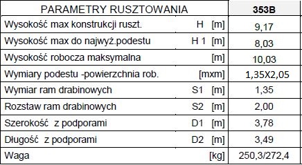 Wymiary podestów – powierzchnia robocza 1,35 x 2,05 m.