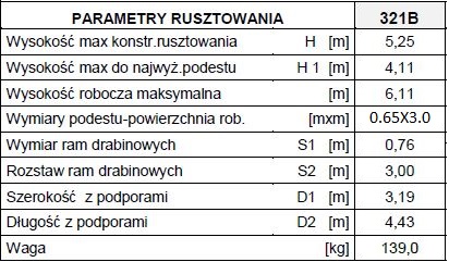 Wymiary podestów – powierzchnia robocza 0,65 x 3,00 m.