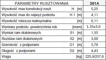 Wymiary podestów – powierzchnia robocza 1,35 x 3,00 m.