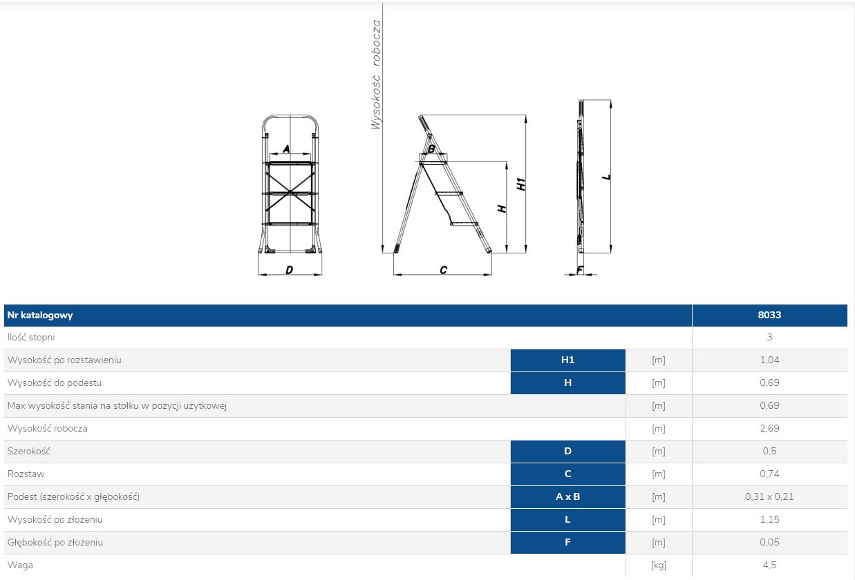 wysokość do podestu - 0.69m