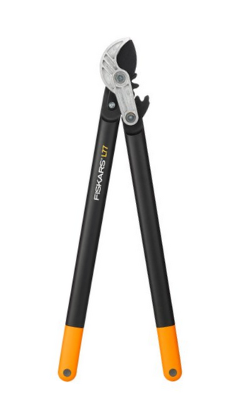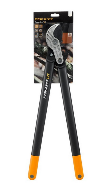 Sekator kowadełkowy Fiskars 1000583 (L) L77 PowerGear umożliwia cięcie suchych i twardych gałęzi drzew i krzewów o grubości  do 50 mm. Nowatorski mechanizm PowerGear™ zwiększa siłę cięcia i redukuje wysiłek podczas pracy. Technologia PowerStep™ pozwala ciąć gałęzie w 1, 2 lub 3 nieforsownych krokach, w zależności od grubości przecinanej gałęzi. Rękojeść została wykonana z trwałego poliamidu wzmocnionego włóknem szklanym, co sprawia że jest lekki i jednocześnie wytrzymały. Ostrze tnące sekatora pokryto powłoką PTFE, która ogranicza tarcie.