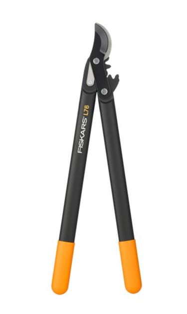 Sekator nożycowy Fiskars 1001553 Hook (M) L76 PowerGear to narzędzie ręczne do precyzyjnego cięcia świeżych gałęzi drzew i krzewów o grubości do 28 mm. Nowatorski mechanizm PowerGear™ zwiększa siłę cięcia i redukuje wysiłek podczas pracy. Technologia PowerStep™ pozwala ciąć gałęzie w 1, 2 lub 3 nieforsownych krokach, w zależności od grubości przecinanej gałęzi. Rękojeść została wykonana z trwałego poliamidu wzmocnionego włóknem szklanym, co sprawia że jest lekki i jednocześnie wytrzymały. Ostrze tnące sekatora pokryto powłoką PTFE, która zmniejsza tarcie, a umożliwia cięcie także czubkami.