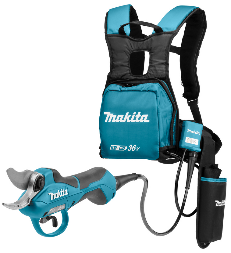 Sekator ogrodowy akumulatorowy Makita DUP362Z to narzędzie do prac ogrodowych związanych cięciem gałęzi i krzewów. Narzędzie zasilane jest dwoma akumulatorami 18V i pozwala na wykonanie do 71000 cięć gałązek o średnicy do 15 mm na jednym naładowaniu 2 akumulatorów BL1850B. Sekator radzi sobie bardzo dobrze z twardymi gałęziami, dzięki zwiększonej sile nacisku. Narzędzie pozwala na gładkie cięcie wykorzystując bardzo ostre ostrza.
