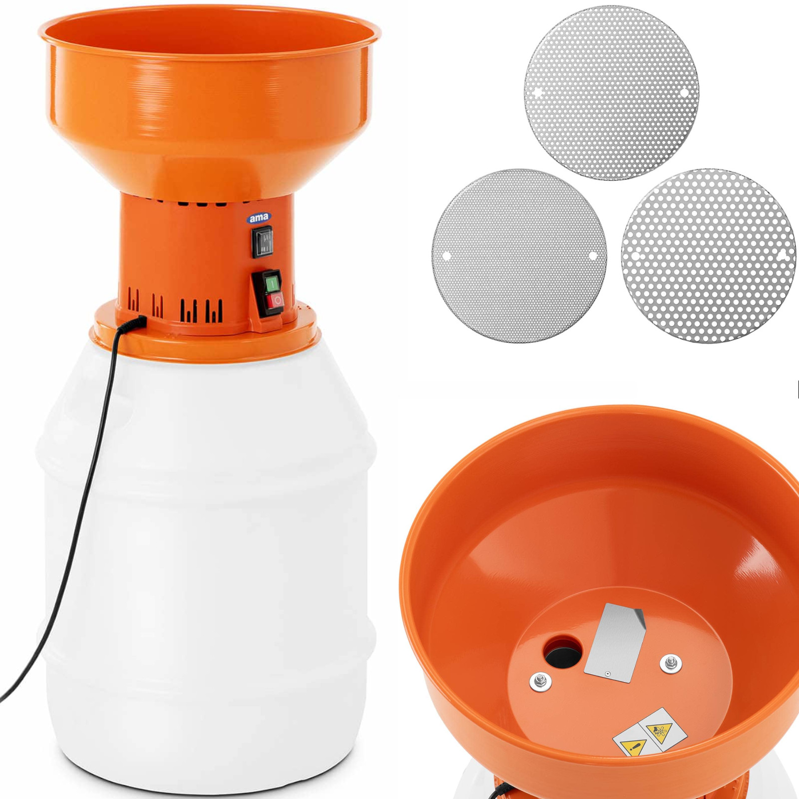 Elektryczny młynek do zboża marki AMA przeznaczony został do samodzielnej produkcji paszy z pszenicy twardej i miękkiej, jęczmienia, owsa, ryżu, żyta czy innej śruty o niskiej zawartości oleju. Urządzenie posiada duży zbiornik o pojemności 50 l. Mocny jednofazowy silnik szczotkowy 2 HP pozwala na przetworzenie 30-250 kg ziarna na godzinę. Wydajność zależy od wybranego sita i rodzaju przetwarzanego zboża. Młynek wykonany został z hartowanej stali, zbiornik o pojemności 21 l z aluminium a sita ze stali nierdzewnej. Pojemnik zbiorczy z odpornego tworzywa sztucznego łatwo jest transportować. Urządzenie jest bezpieczne i łatwe w użyciu. Spełnia aktualne normy bezpieczeństwa dotyczące ochrony przed obracającymi się częściami. Posiada także zabezpieczenie przeciwzwarciowe, nadprądowe i odwrotnej polaryzacji oraz pracuje bez iskier. Młynek nie nadaje się do produkcji żywności a jedynie do produkcji pasz dla zwierząt.