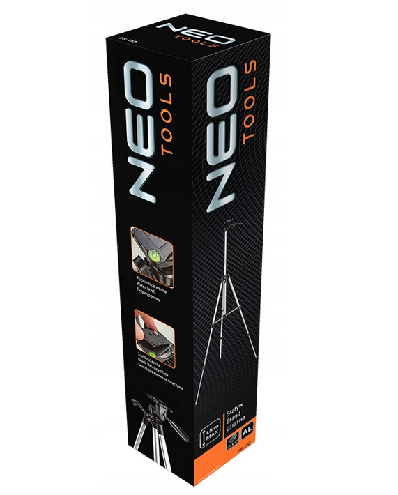 Statyw do lasera 1/4'' Neo 75-110 służy do mocowania urządzeń laserowych i innych przyrządów z możliwością dopasowania kąta i wysokości do 150 cm. Lekka aluminiowa konstrukcja statywu 75-110 ułatwia transport i dostosowanie do potrzeb użytkownika. Statyw do lasera Neo 75-110 posiada gwint montażowy 1/4" który jest kompatybilny z wszystkimi niwelatorami laserowymi, laserami płaszczyznowymi, punktowymi, aparatami fotograficznymi lub kamerami video, a także z dalmierzami oraz laserami krzyżowymi.
