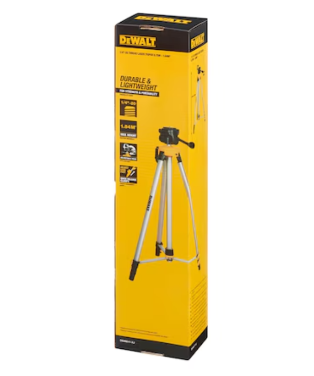 Statyw do laserów Dewalt DE0881T to osprzęt służący do mocowania niwelatorów optycznych, laserowych, rotacyjnych oraz urządzeń posiadających gwint 1/4" i pracuje w zakresie wysokości od 75 do 184 cm. Statyw Dewalt DE0881T to lekki i dobrze wykonany statyw do przyrządów pomiarowych, umożliwiający regulację i dostosowanie do różnych warunków użycia. Głowica statywu DE0881T regulowania jest w 2 płaszczyznach za pomocą rączki, również skośnie i posiada szybko demontowalną podstawkę dla łatwego zdjęcia instrumentu pomiarowego. Statyw Dewalt DE0881T-XJ został wyposażony w sferyczną libelle do poziomowania zestawu.