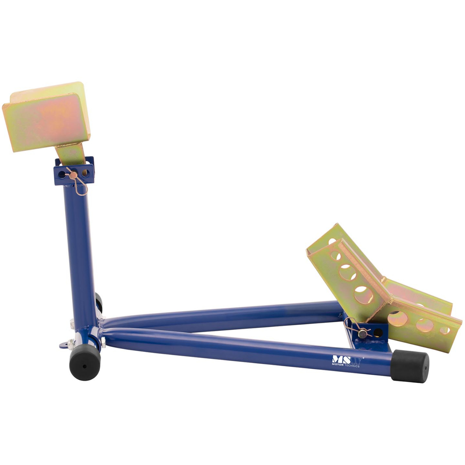 Stojak motocyklowy marki MSW pozwala zaparkować, przetransportować lub przechowywać motocykl. Idealny do przeprowadzania prac konserwacyjnych. Posiada nośność do 200 kg. Uchwyt można przymocować do podłoża na stałe. Specjalny mechanizm mocuje przednią oponę zaciskając ją po wjechaniu. Wspornik jest optymalnie regulowany i przeznaczony do kół o rozmiarze 16-21'' i szerokości 11-13 cm. Stojak zapewnia także wystarczające podparcie podczas transportu na przyczepie, wystarczy tylko zabezpieczyć go pasami.