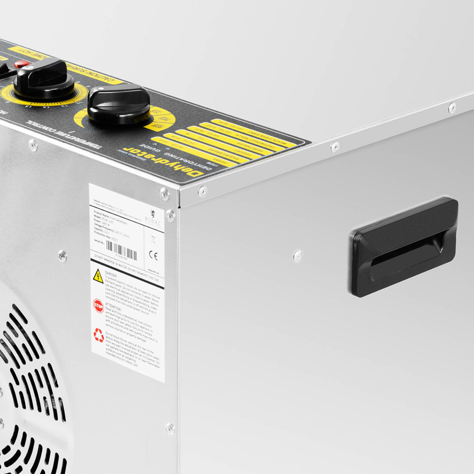 Suszarka do żywności marki Royal Catering umożliwia wysuszenie grzybów, warzyw, owoców a także mięsa czy ziół. Duża moc urządzenia 1800 W gwarantuje szybką i skuteczną pracę. Temperatura regulowana jest w zakresie 40-90C. Timer umożliwia utrzymywanie jej w zakresie 0-15 h. Wnętrze urządzenia wyposażone zostało w 16 tac ze stali nierdzewnej oraz silikonowe maty idealne do suszenia soczystych owoców. Obudowę wykonano ze stali nierdzewnej. Drzwiczki posiadają okno z hartowanego szkła. Kółka z hamulcami umożliwiają wygodny transport.