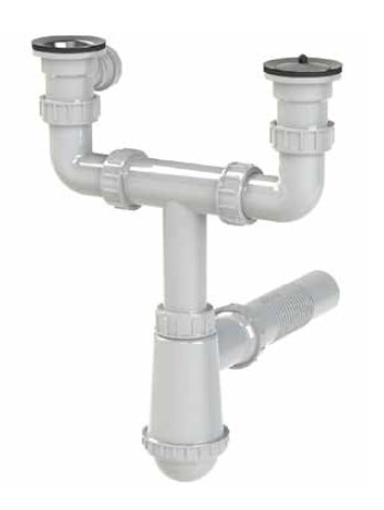 SYFON ZLEWOZMYWAKOWY 2 KOMOROWY - Z PRZELEWEM 3.5'