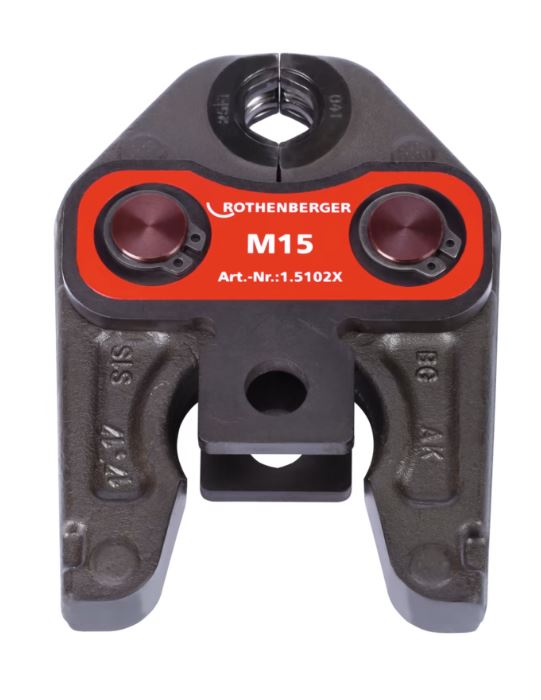Szczęka zaciskowa Rothenberger M15 mm 15102X doskonale sprawdzi się w zaprasowywaniu systemowym przyłączek wykonanych z metalu i tworzyw sztucznych.