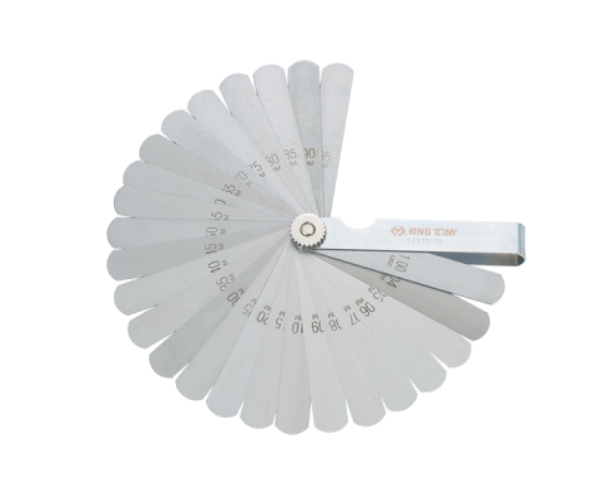Szczelinomierz King Tony 77335-25 to narzędzie do precyzyjnego odstępu miedzy elementami. Szczelinomierz 77335-25  ma budowę pasków wykonanych ze stali nierdzewnej o różnych grubościach. King Tony 77335-25  wykorzystywany jest w motoryzacji, przemyśle, w budowie maszyn, a także przy pracach montażowych i remontowych. Idealny do pomiaru luzów łożysk, szczelin, luzów zaworów. Zestaw szczelinomierzy King Tony 77335-25 składa się z 25 płytek w różnych grubościach.