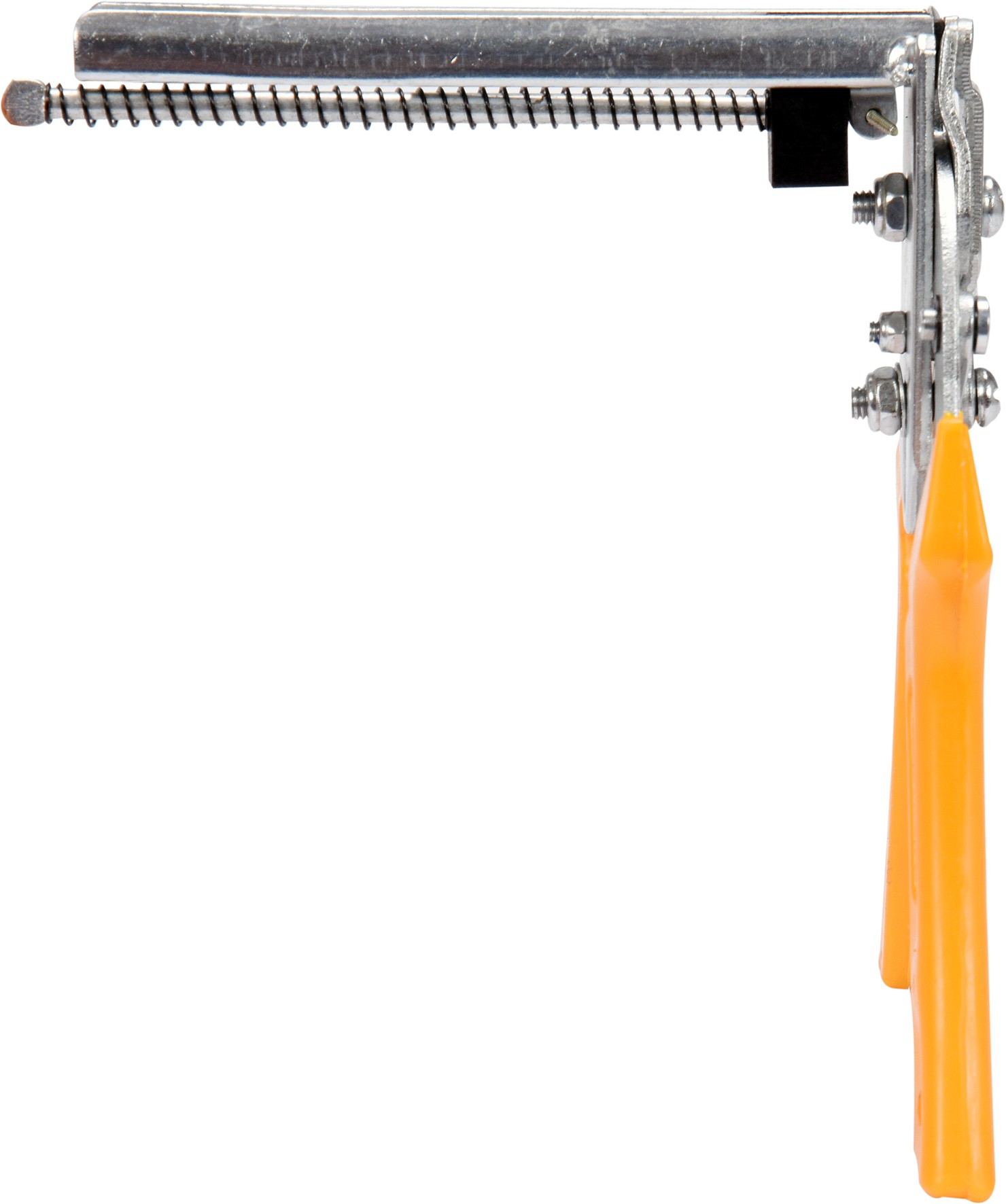 Umieścić łączone druty w wycięciu na czole podajnika szczypiec i ścisnąć rękojeści.Zszywka zostaje zawinięta dookoła łączonych drutów.