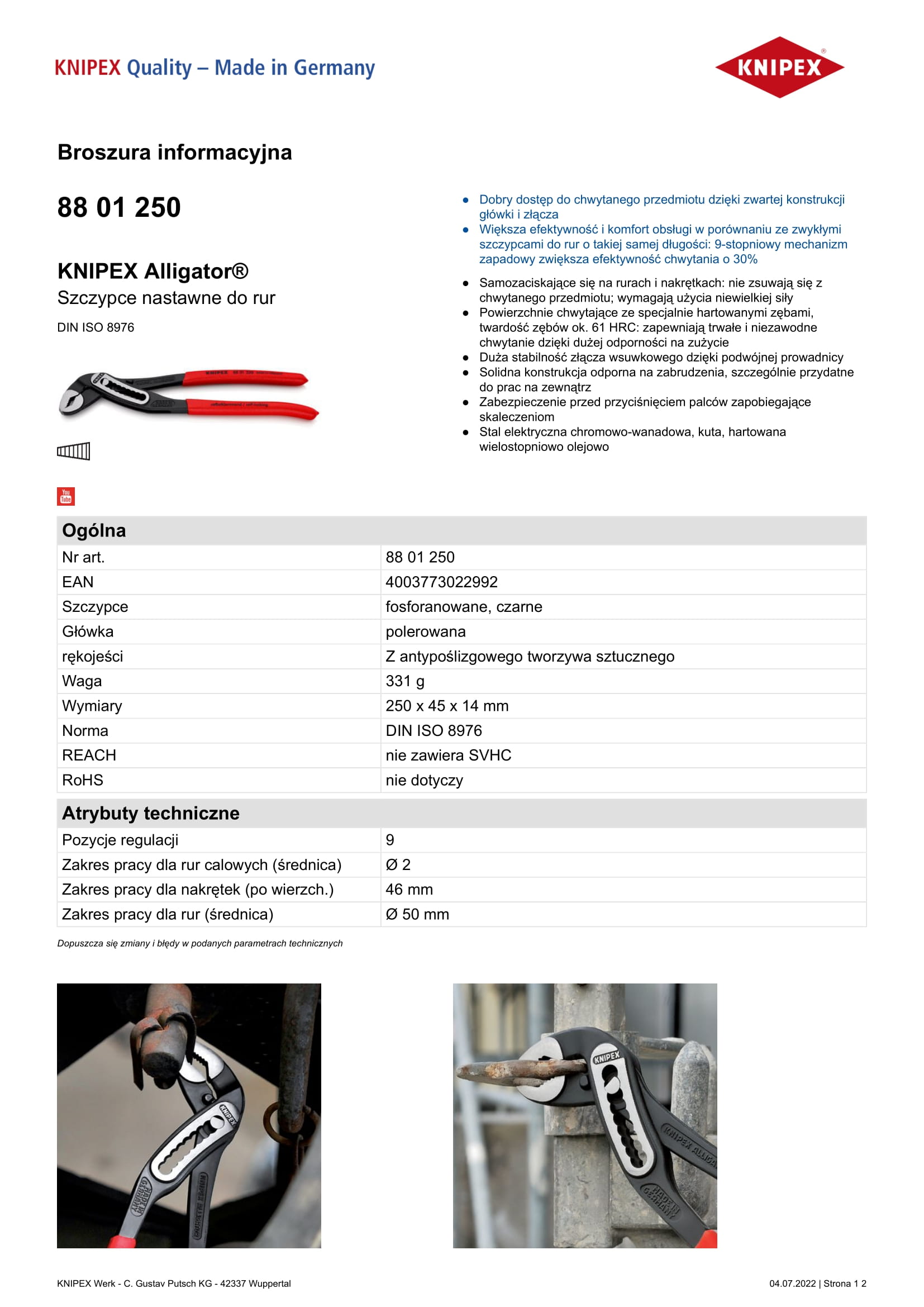 Zakres pracy dla rur calowych (średnica): 2