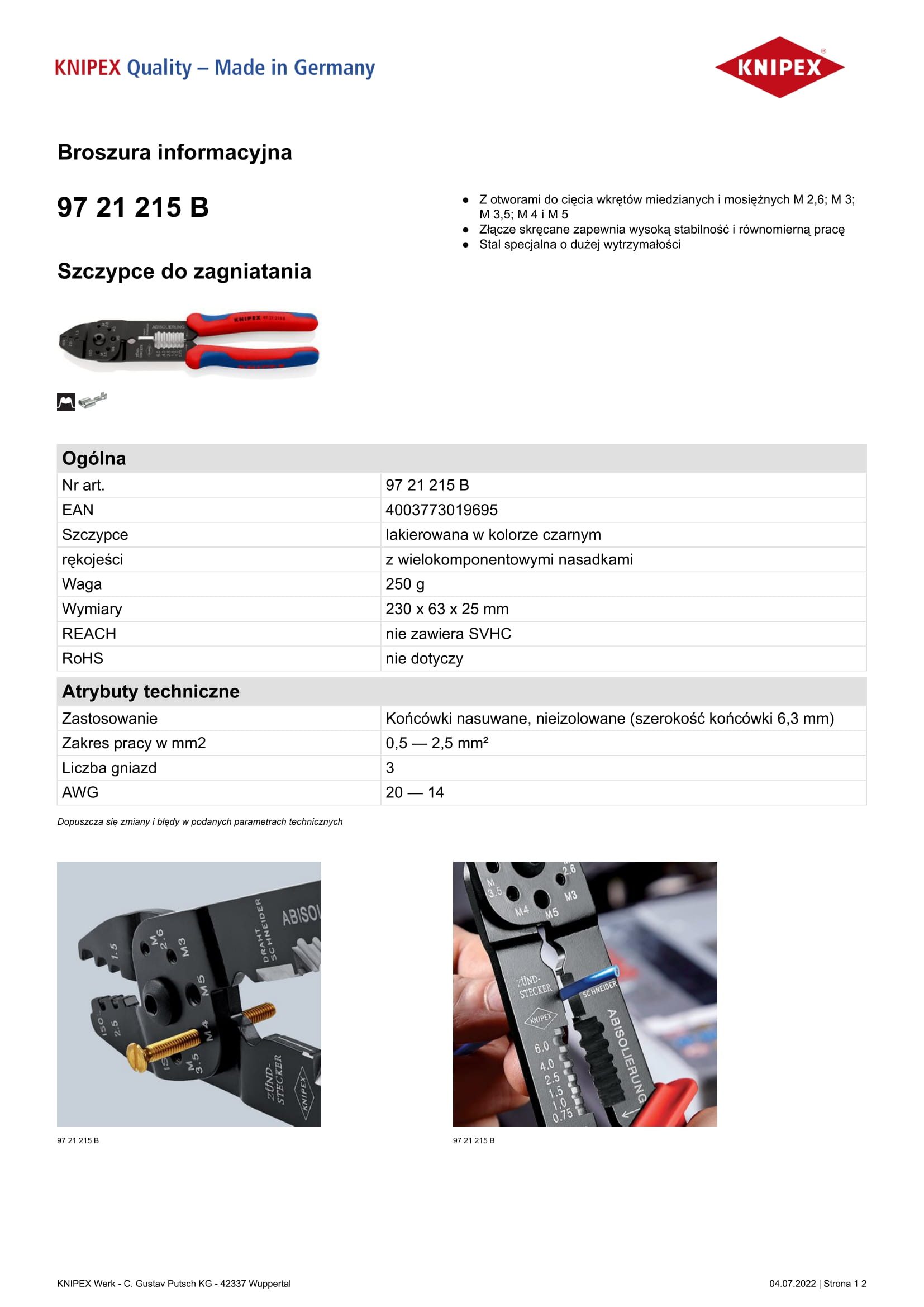 Zakres pracy w mm2: 0,5 — 2,5 mm2