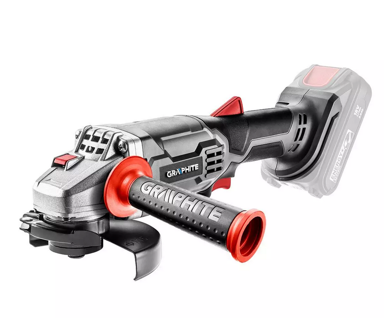 Szlifierka kątowa Graphite 58G003 współpracuje z akumulatorami 18V Li-Ion GRAPHITE Energy+. Kątówka przystosowana jest do pracy z tarczami o średnicy 115 mm i  osiąga prędkość 10000 obrotów na minutę. Szlifierkę wyposażono w dwuelementowy przycisk włącznika, zapewniający bezpieczeństwo i pełną kontrolę nad pracą urządzenia. Konstrukcja elektronarzędzia odznacza się wysoką ergonomią - przewężona część chwytowa została pokryta antypoślizgowym tworzywem, dzięki czemu szlifierka pewnie leży w dłoni.