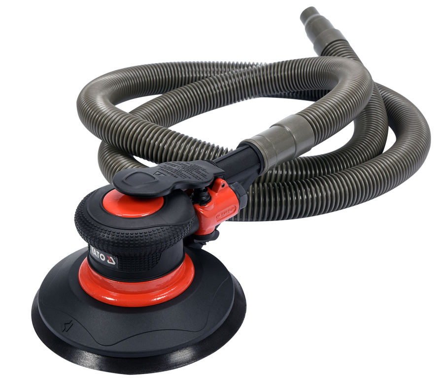 Szlifierka mimośrodowa pneumatyczna Yato YT-09740 jest wydajnym narzędziem do szlifowania i polerowania zasilane strumieniem sprężonego powietrza pod odpowiednim ciśnieniem. Narzędzie Yato YT-09740 posiada wytrzymałą aluminiową obudowę, minimalizującą drgania i pozwalającą dobrze kontrolować pracę szlifierki. Ruch oscylacyjny na poziomie 5 mm gwarantuje optymalną obróbkę powierzchni. Szlifierka mimośrodowa Yato YT-09740 montaż tarcz ściernych o średnicy 150 mm odbywa się na tzw. rzep, co przyśpiesza przezbrojenie bez użycia dodatkowych narzędzi. Szlifierka Yato YT-09740 jest wyposażona w szybkozłączkę 1/4" pozwalającą przyłączyć ją do układu sprężonego powietrza.