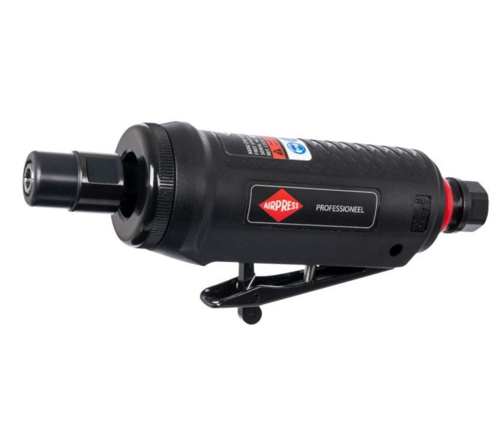 Szlifierka pneumatyczna prosta Airpress 45465 jest narzędziem zasilanym strumieniem sprężonego powietrza przeznaczonym do szlifowania i cięcia metalu, drewna lub tworzyw sztucznych. Szlifierka prosta Airpress 45465 wykorzystuje narzędzia trzpieniowe tnące i szlifujące o średnicy trzpienia 6 mm. Szlifierka Airpress 45465 posiada kompozytową obudowę i posiada szybkozłącze 1/4" do zasilania sprężonym powietrzem.