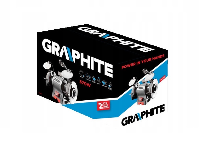 Wysokiej klasy szlifierka stołowa GRAPHITE 59G383 o mocy 370 W, przeznaczona do obróbki materiałów o dużej twardości.