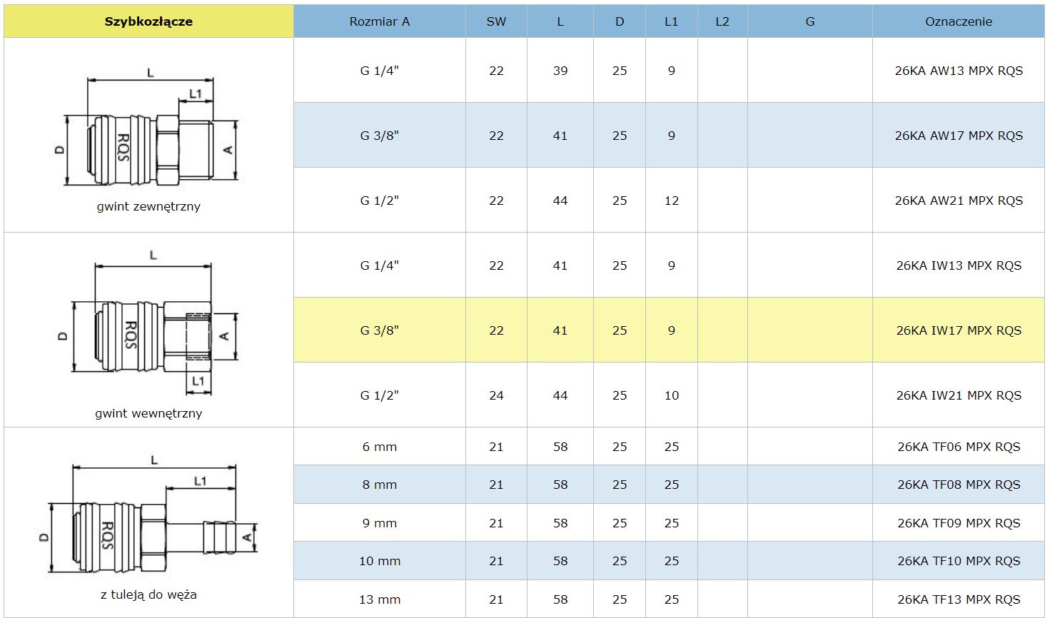 SZYBKOZŁĄCZE TYP 26 1/2'' GWINT ZEWNĘTRZNY RQS