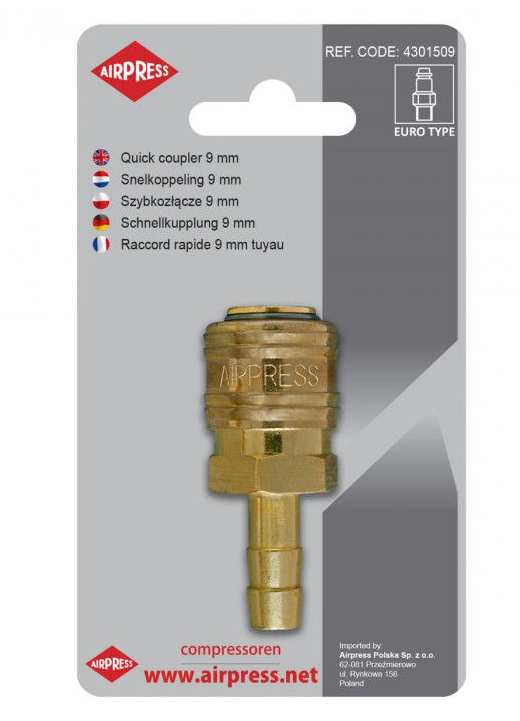 Szybkozłączka pneumatyczna na wąż 9mm Airpress 4301509Szybkozłączka pneumatyczna na wąż 9mm Airpress 4301509