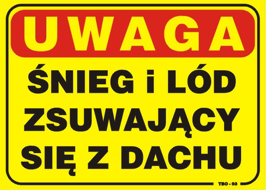 TABLICA 35*25CM ŚNIEG I LÓD ZSUWAJĄCY SIĘ Z DACHU