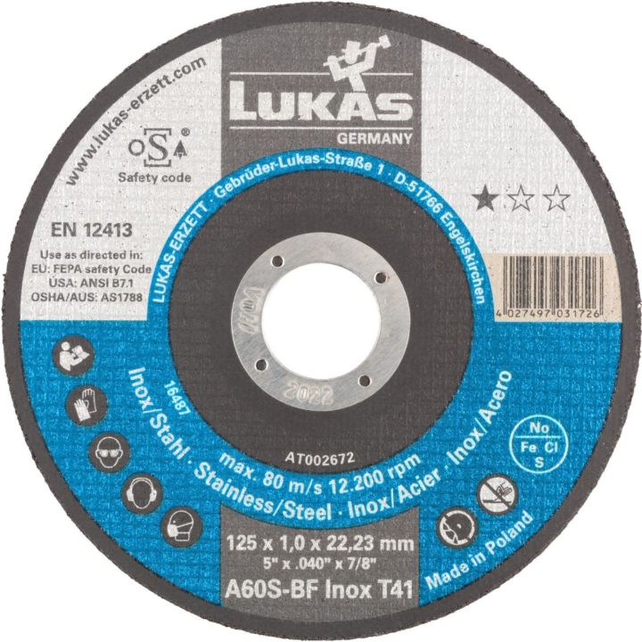 TARCZA PŁASKA T1A 125*1.0*22 A60S-BF INOX PREMIUMFLEX