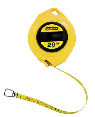 Taśma miernicza stalowa 30m Stanley 0-34-108 to narzędzie do pomiaru długości do 30 metrów. Miara zwijana została wykonana z taśmy stalowej pokrytej warstwą polimeru, chroniącym przed uszkodzeniami lub przetarciami. Taśma miernicza 0-34-108 posiada obudowę z wytrzymałego tworzywa sztucznego wyposażoną w składaną korbkę i chowany haczyk. Taśma miernicza Stanley 0-34-108 została polakierowana na kolor żółty, poprawiający widoczność i czytelność naniesionej co 1mm podziałki.
