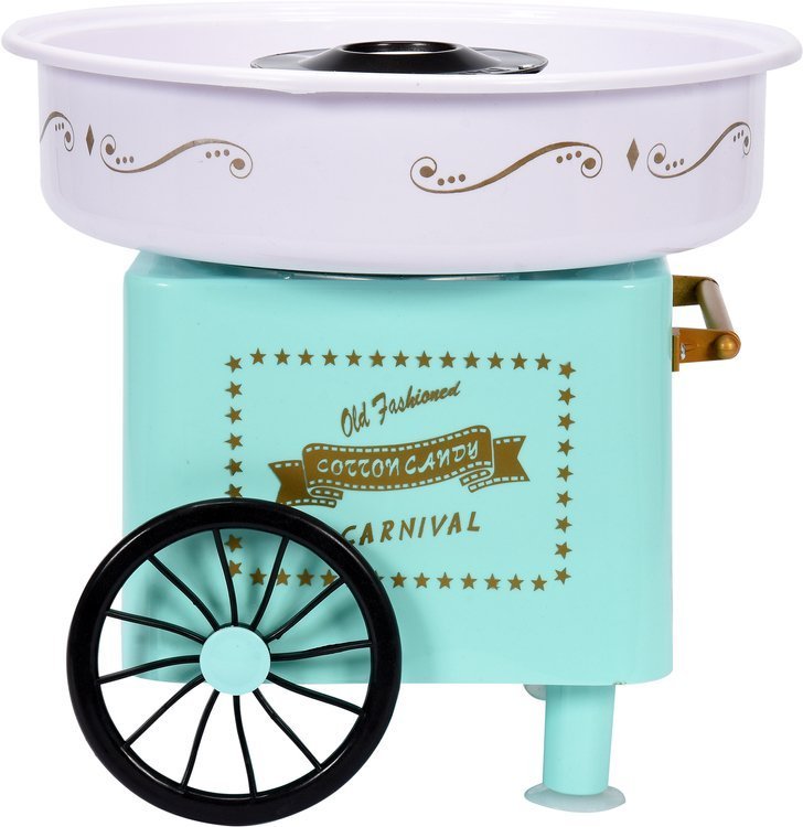 Urządzenie do waty cukrowej w kształcie wózka to świetny pomysł na sprawienie niespodzianki najmłodszym. Słodka wata cukrowa sprawdzi się zarówno na imprezie urodzinowej jak i jako poobiedni deser. Dodając barwnik spożywczy można zabarwić watę na dowolny kolor. Dzięki ładnemu opakowaniu i wyjątkowemu kształtowi świetnie sprawdzi się jako prezent.
