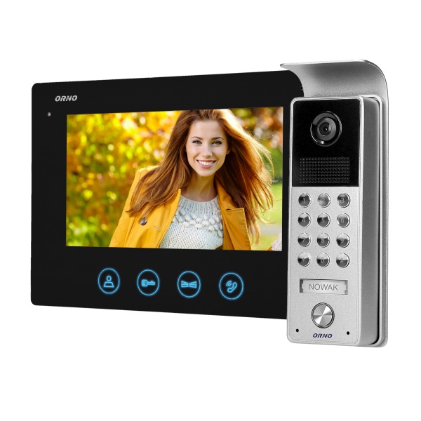 Zestaw wideo domofonowy zawiera kolorowy, ultra płaski monitor bezsłuchawkowy LCD 7" z dotykowym panelem i podświetlanymi przyciskami. Parametry monitora (głośność dzwonka i rozmowy oraz jasność i kolor obrazu) można regulować w płynny sposób. Użytkownicy mają do wyboru aż 16 dźwięków dzwonka. Inne zalety zestawu to: kamera CMOS, daszek ochronny w zestawie, miejsce na nazwisko. Ponadto oświetlenie podczerwienią umożliwia dobre widzenie w nocy. Numeryczna klawiatura na panelu umożliwia otwarcie elektrozaczepu za pomocą kodu, a dodatkowo zestaw ten może również sterować otwieraniem bramy. Nadaje się do montażu natynkowego.