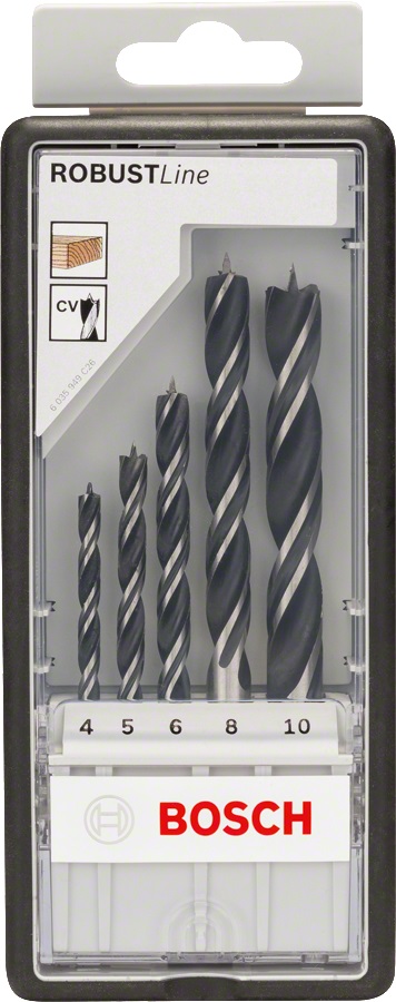 Opis zestawu: 5-elem. zestawy wierteł krętych do drewna Robust Line Średnice (mm): 4 5 6 8 10 Długości robocze (mm): 40 45 50 65 75