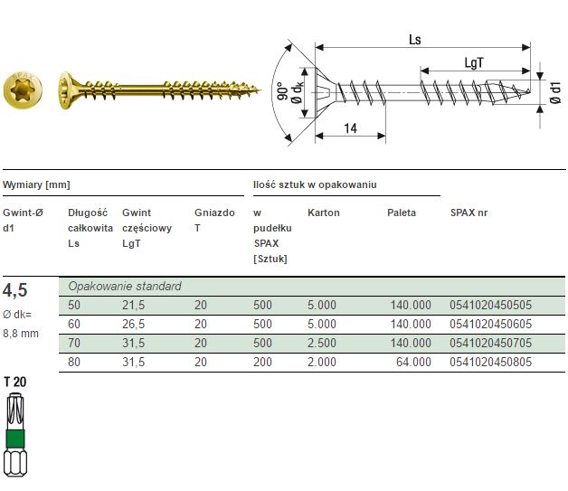 Wkręt z główką stożkową , gniazdo SPAX T-STAR plus