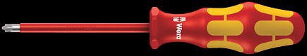 Wkrętak izolowany VDE z wielokomponentową rękojeścią Kraftform do szybkiej i bezpiecznej pracy: twarde strefy chwytu umożliwiają szybkie pokręcanie, miękkie strefy zapewniają przenoszenie wysokich momentów obrotowych.