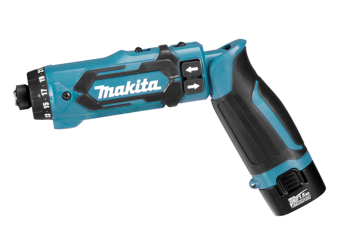 Wkrętarka Makita DF012DSE do małe i poręczne elektronarzędzie do wkręcania i wiercenia. Znajdzie zastosowanie w warsztacie, garażu przy majsterkowaniu i różnego rodzaju naprawach. Wkrętarka DF012DSE zasilana jest akumulatorem o napięciu 7,2V, co zapewnia wydajną i stabilną pracę. Regulowany kąt rękojeści wkrętarki pozwala na dopasowanie do preferencji użytkownika. Szeroka 21-stopniowa regulacja momentu obrotowego wkrętarki Makita DF012DSE umożliwia dostosowanie siły dokręcania z dużą precyzją, chroniąc elementy złączne przed uszkodzeniem. Precyzję pracy poprawia oświetlenie LED, doświetlając obszar roboczy, szczególnie w ciasnych przestrzeniach.