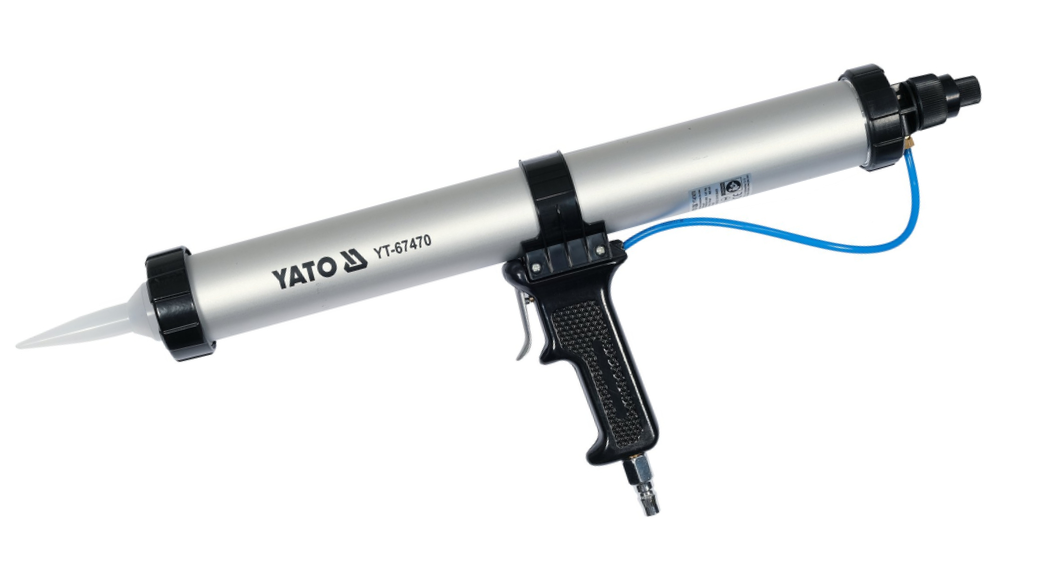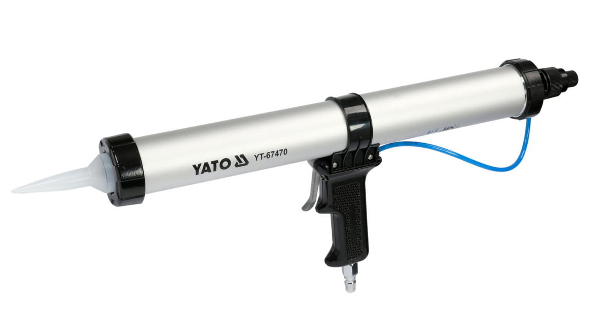 Pneumatyczny wyciskacz Yato YT-67470 to narzędzie do precyzyjnego podawania mas uszczelniających, silikonów i klejów zasilane strumieniem sprężonego powietrza. Narzędzie składa się z długiej aluminiowej tuby o pojemności 600 ml zamocowanej na rękojeści. Wyciskacz Yato YT-67470 posiada regulator ciśnienia, który pozwala na dozowanie materiału w odpowiedniej ilości, aby stworzyć wysokojakościową spoinę. Pracuje z maksymalnym ciśnieniem sprężonego powietrza do 10 bar.