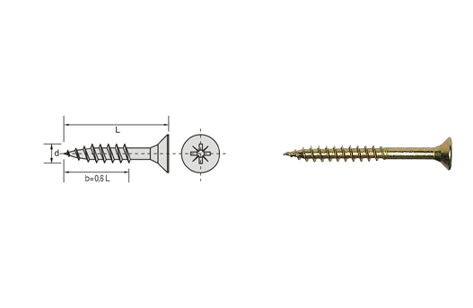 Wkręt do drewna 6x60x35 mm ocynk zółty
