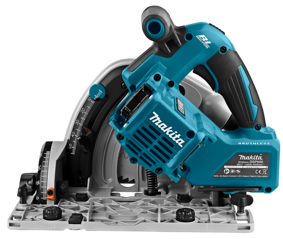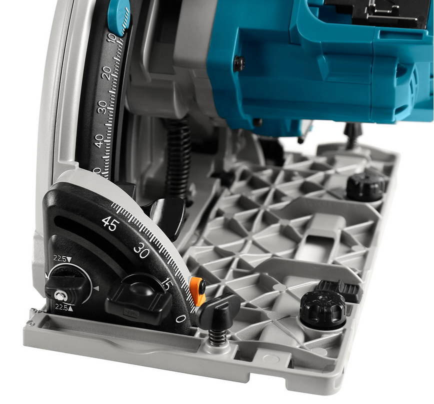 Makita zagłębiarka DSP600ZJ umożliwia cięcie kątowe w zakresie od -1° do 48°, co zapewnia elastyczność w wykonywaniu różnych rodzajów cięć. Wyrzutnik wiórów w tył względem linii cięcia pomaga utrzymać miejsce pracy w czystości i zapewnia lepszą widoczność linii cięcia.