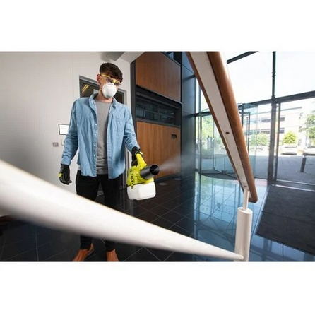 Zamgławiacz akumulatorowy RY18FGA-0 Ryobi 5133004912 to urządzenie do generowania mgły i znajduje zastosowanie w wielu dziedzinach jak dezynfekcji, dezynsekcji i ochrony roślin przed chorobami i szkodnikami. Obszary zastosowań: do domu, ogrodu, motoryzacji, rękodzieła, rzemiosła, rekreacji (kemping, wędkarstwo, agrotyrystyka) i wielu innych. Zamgławiacz RY18FGA-0 Ryobi zasilany jest akumulatorami 18V ONE+™ . Idealnie sprawdzi się w rozpylaniu środków owadobójczych, chwastobójczych, grzybobójczych, dezynfekujących i większości innych środków czyszczących. Pozwala na dezynfekcje do 93 m2 w ciągu minuty. Akumulator 5,0 Ah (brak w zestawie) umożliwi pracę zamgławiaczem R18FGA-0 do 30 godzin na jednym ładowaniu.